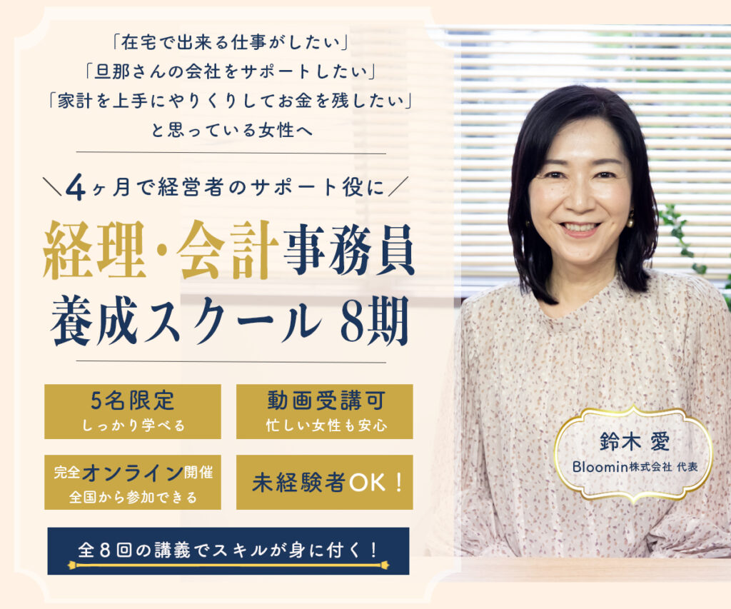 4ヶ月で未経験者が中小企業や個人事業主の経理や会計の仕事ができるスキルが身につくオンラインスクール